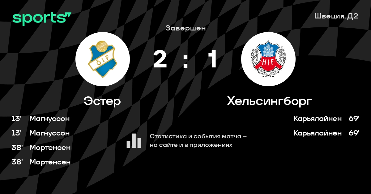 Эстер – Хельсингборг: Эстер забивает в 6 из 8 последних матчей против этого соперника
