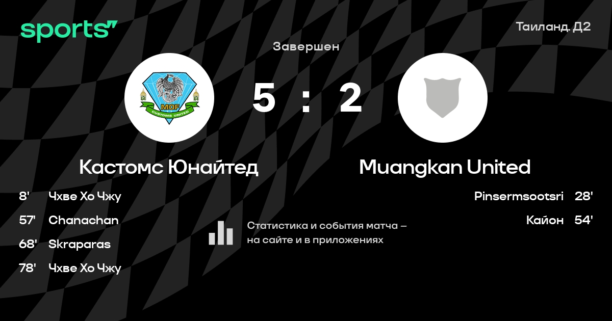 Кастомс Юнайтед – Muangkan United FC: коэффициенты