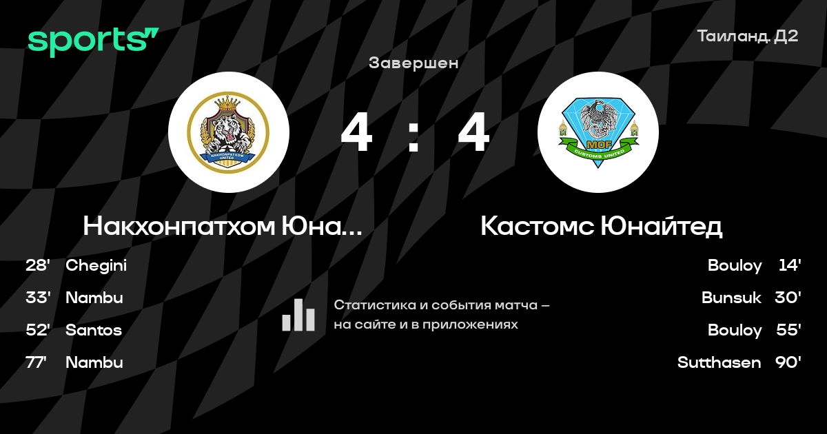 Накхонпатхом Юнайтед – Кастомс Юнайтед: Накхонпатхом Юнайтед не пропускает в 3 последних матчах против этого соперника
