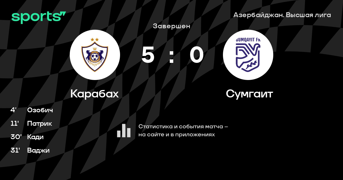 Карабах – Сумгаит: Карабах забивает в 3 последних матчах против этого соперника