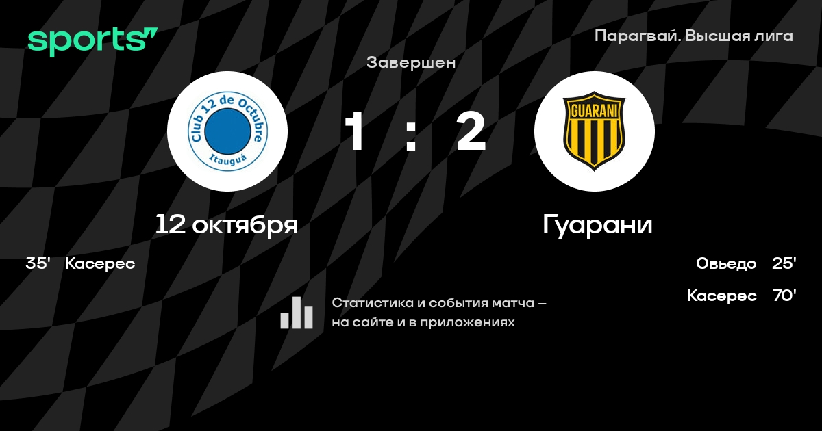 12 октября – Гуарани: Гуарани забивает в 3 последних матчах против этого соперника