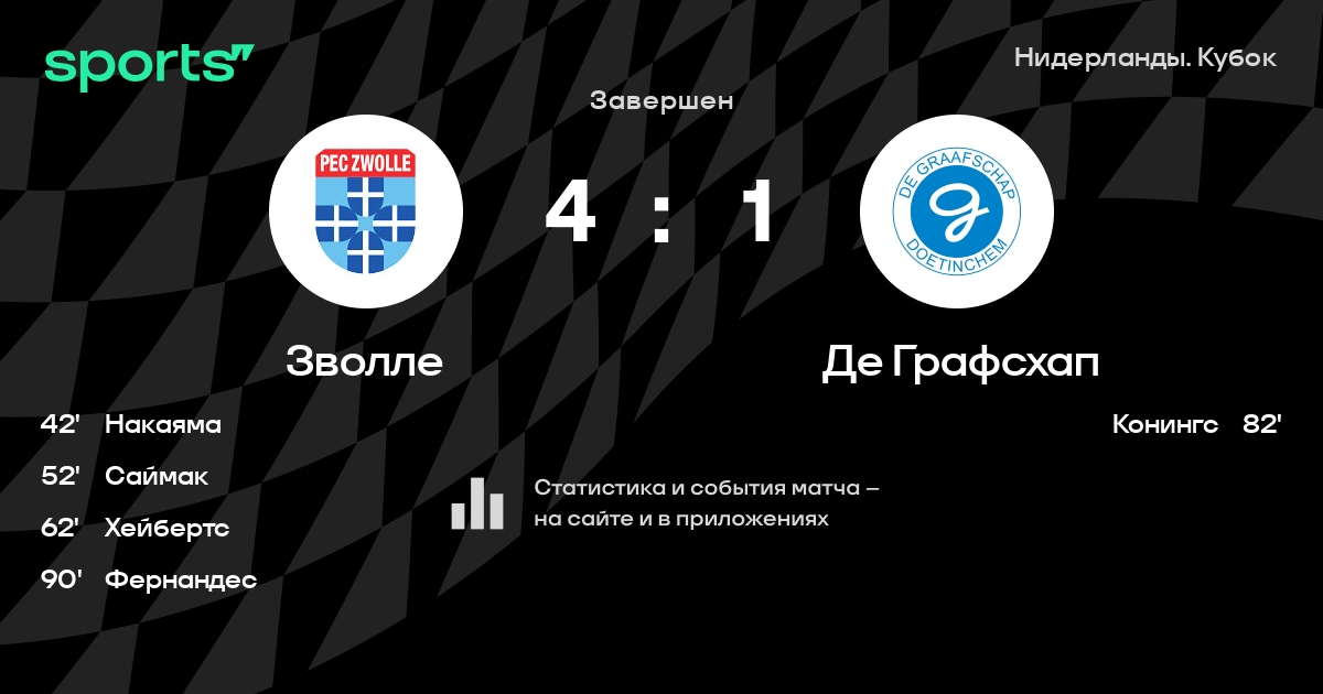 Зволле – Де Графсхап: Де Графсхап не проигрывает в 6 из 8 последних матчей против этого соперника в гостях в турнире «Нидерланды. Кубок КНВБ»