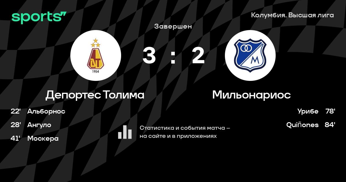 Депортес Толима – Мильонариос: Депортес Толима не проигрывает в 9 последних матчах против этого соперника
