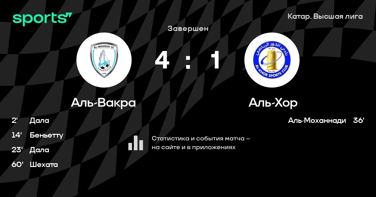 Аль-Вакра – Аль-Хор: Аль-Хор не проигрывает в 6 из 8 последних матчей против этого соперника