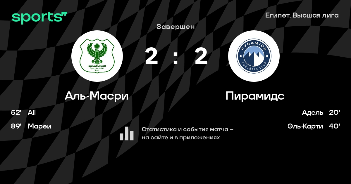 Аль-Масри – Пирамидс: Аль-Масри забивает в 4 последних матчах против этого соперника