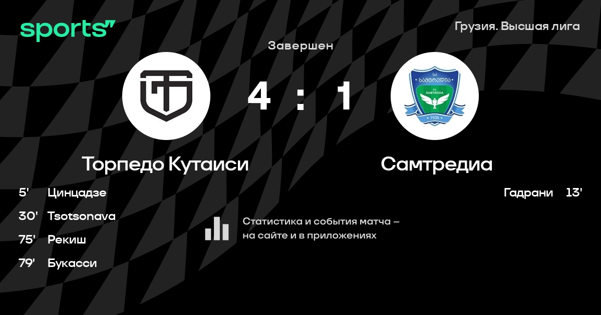 Торпедо Кутаиси – Самтредиа: Торпедо Кутаиси не проигрывает в 12 последних матчах против этого соперника дома