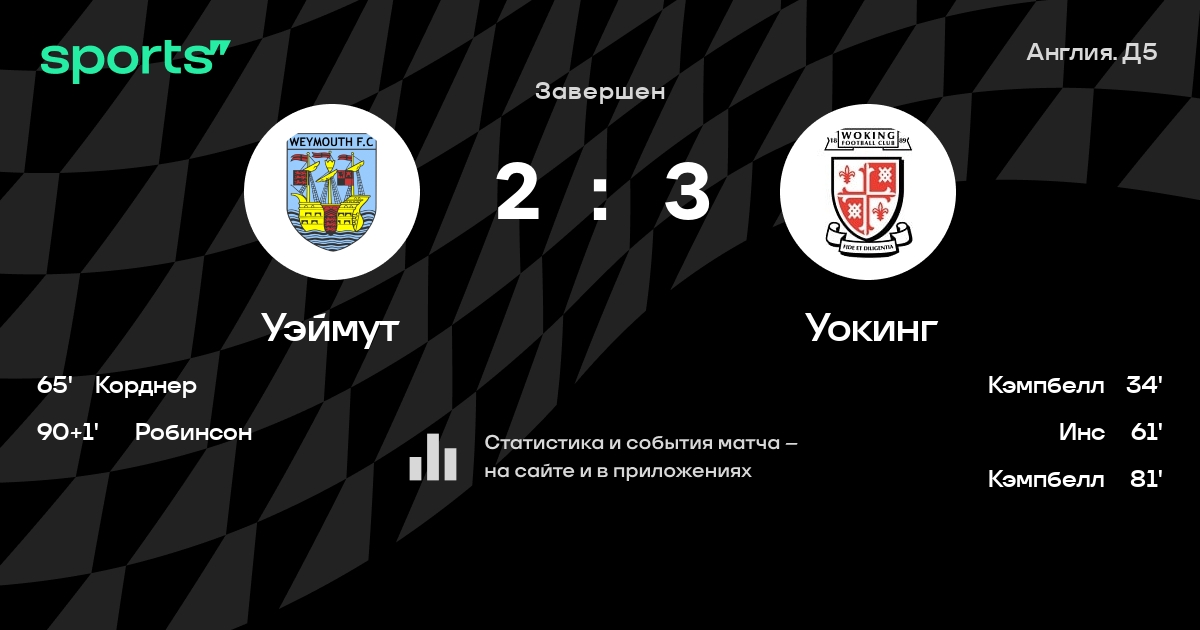 Уэймут – Уокинг: Уокинг забивает в 3 последних матчах против этого соперника