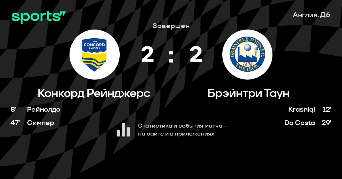Трансляция Конкорд Рейнджерс - Брэйнтри Таун