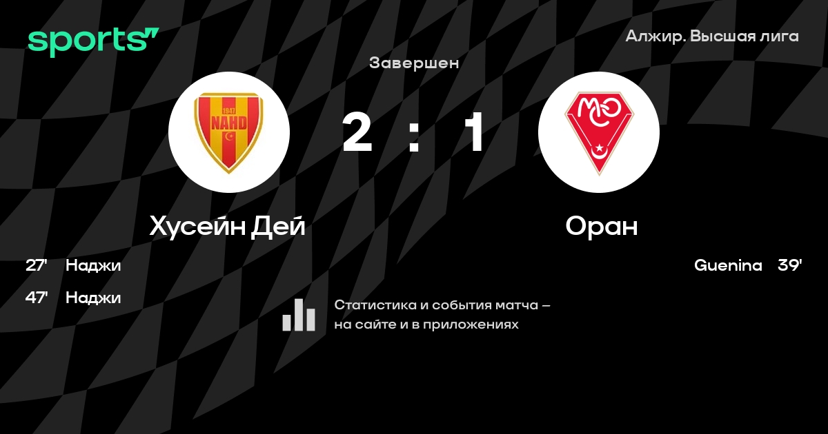 Хусейн Дей – Оран: Хусейн Дей забивает в 5 из 7 последних матчей против этого соперника