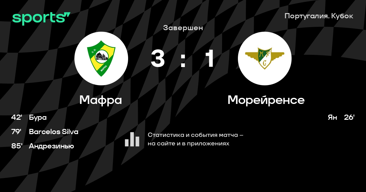 Морейренсе проигрывает в 3 последних матчах в гостях в турнире «Португалия. Кубок»