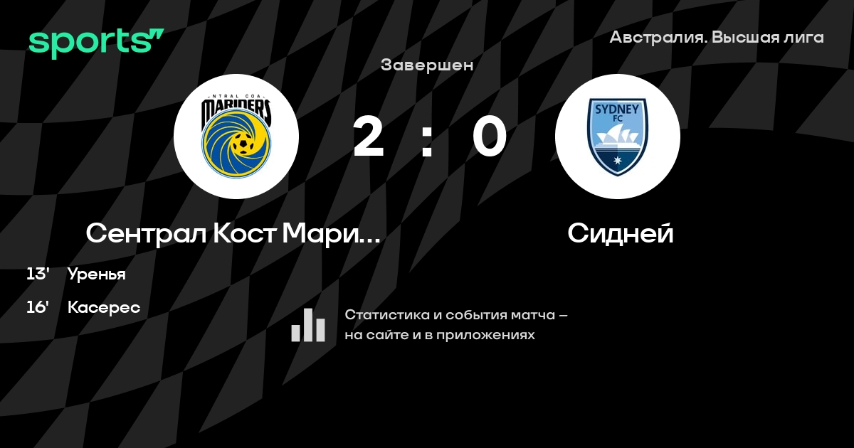 Сентрал Кост Мэринерс – Сидней: Сидней не проигрывает в 8 из 10 последних матчей против этого соперника