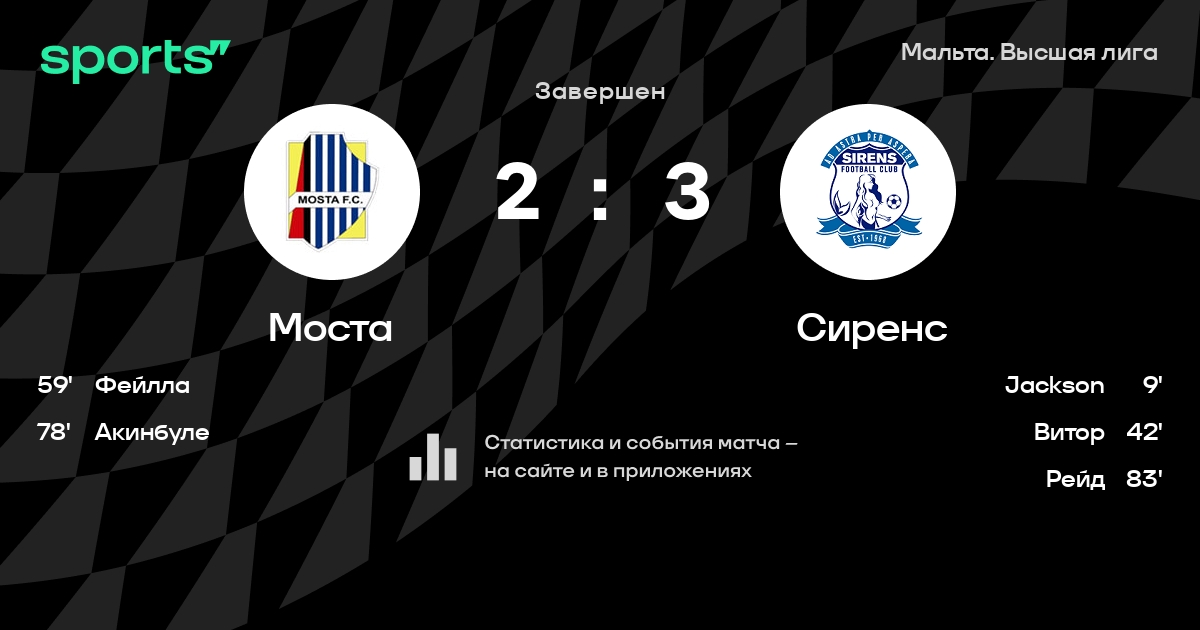 Моста – Сиренс: Сиренс не проигрывает в 5 последних матчах против этого соперника