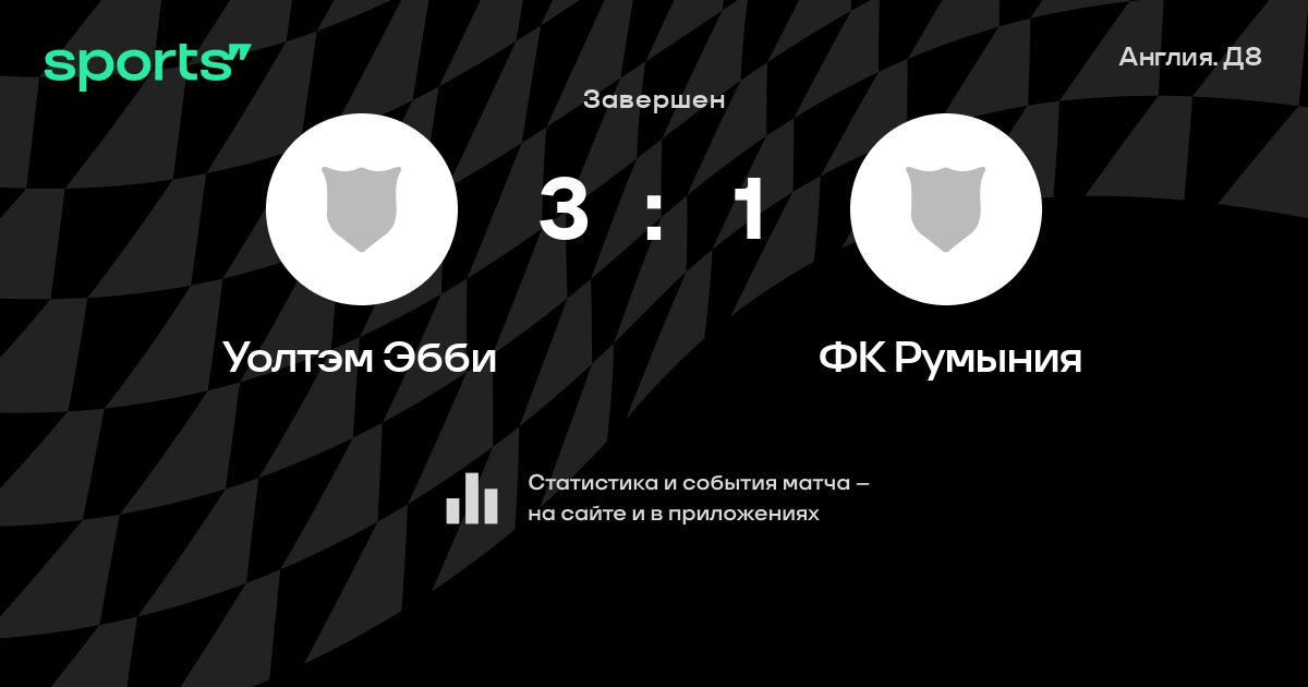 Уолтэм Эбби – ФК Румыния: коэффициенты
