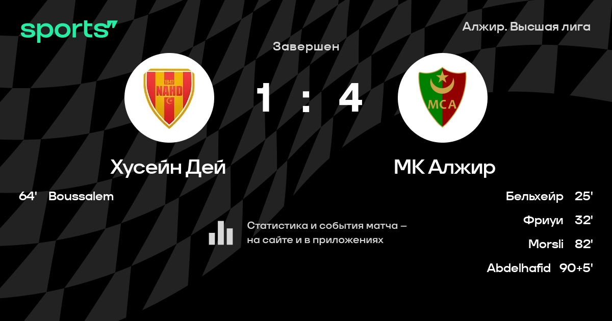 Хусейн Дей – МК Алжир: Хусейн Дей не проигрывает в 8 последних матчах против этого соперника дома