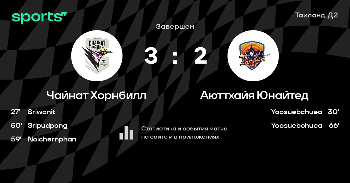 Чайнат Хорнбилл – Аюттхайя Юнайтед: коэффициенты
