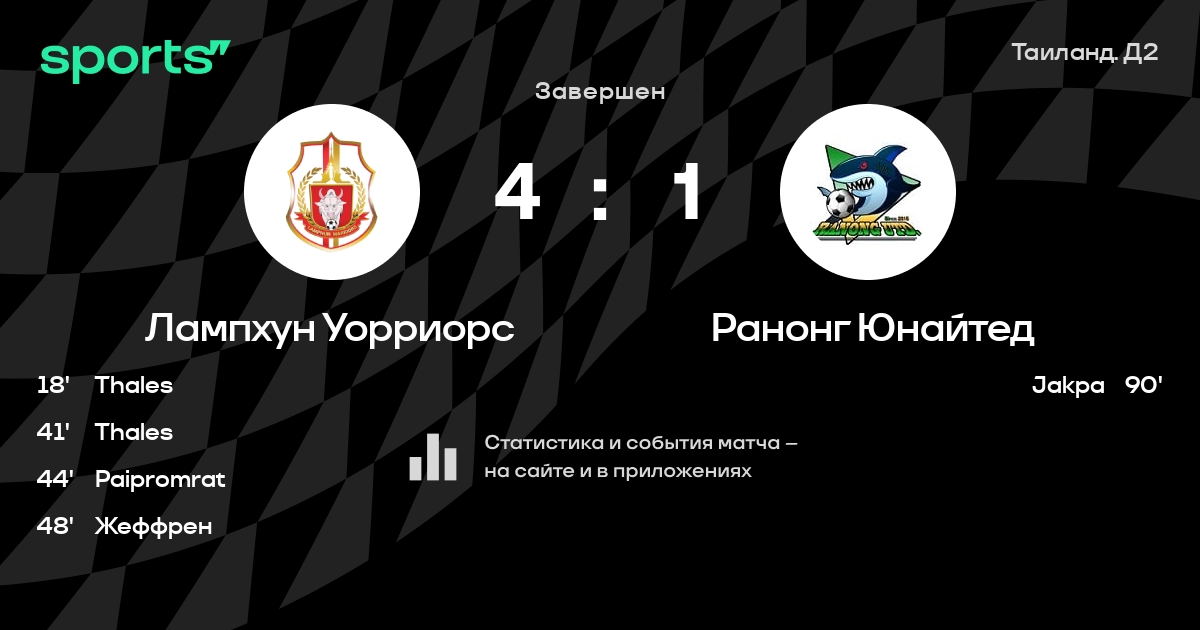 Трансляция Лампхун Уорриорс - Ранонг Юнайтед