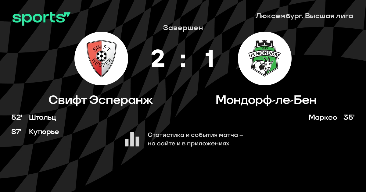 Свифт Эсперанж – Мондорф-ле-Бен: Мондорф-ле-Бен забивает в 6 последних матчах против этого соперника
