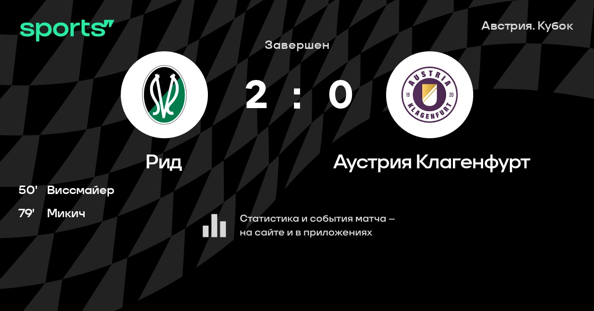 Рид – Аустрия Клагенфурт: Аустрия Клагенфурт не проигрывает в 5 последних матчах против этого соперника