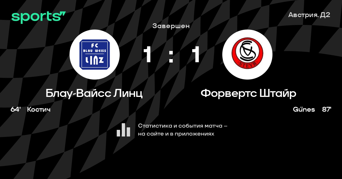Блау-Вайсс Линц – Форвертс Штайр: Блау-Вайсс Линц забивает в 12 последних матчах против этого соперника