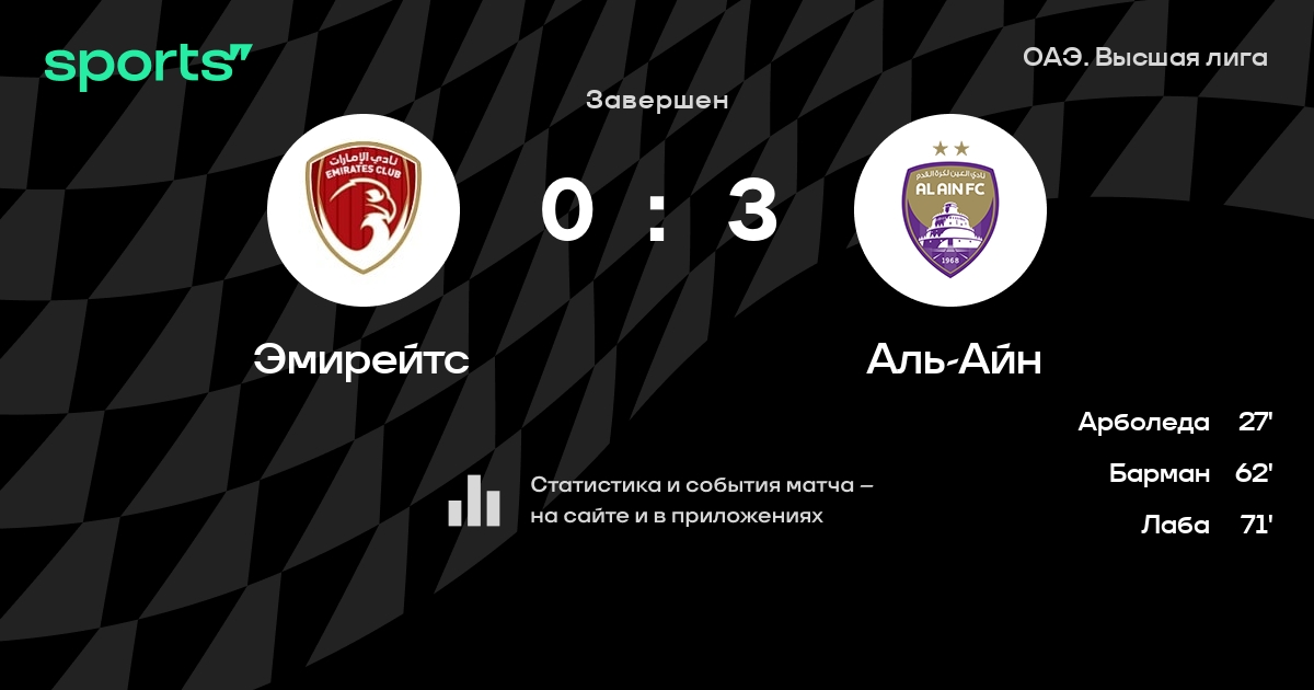 Эмирейтс – Аль-Айн: Аль-Айн не проигрывает в 7 из 9 последних матчей против этого соперника