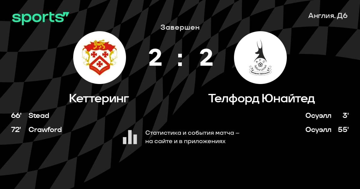 Кеттеринг – Телфорд Юнайтед: Телфорд Юнайтед забивает в 7 из 9 последних матчей против этого соперника