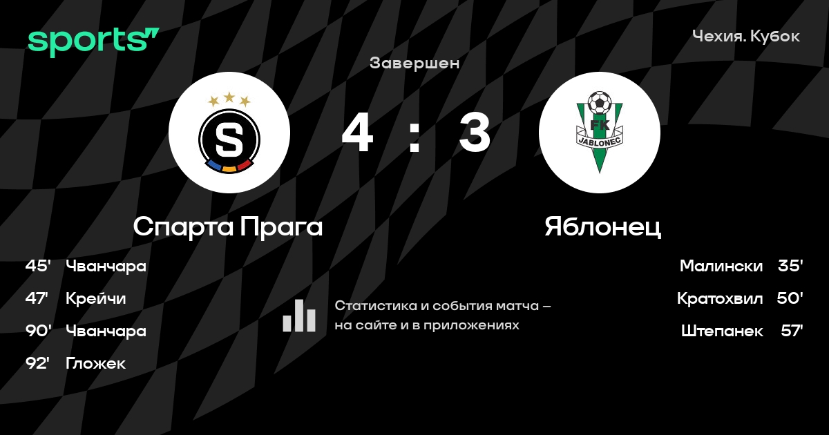 Спарта Прага – Яблонец: Яблонец забивает в 4 последних матчах против этого соперника