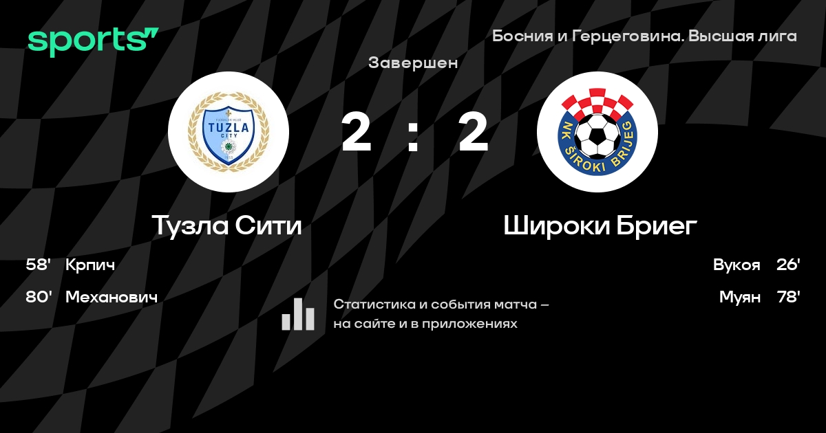 Тузла Сити – Широки Бриег: Широки Бриег не проигрывает в 5 последних матчах против этого соперника