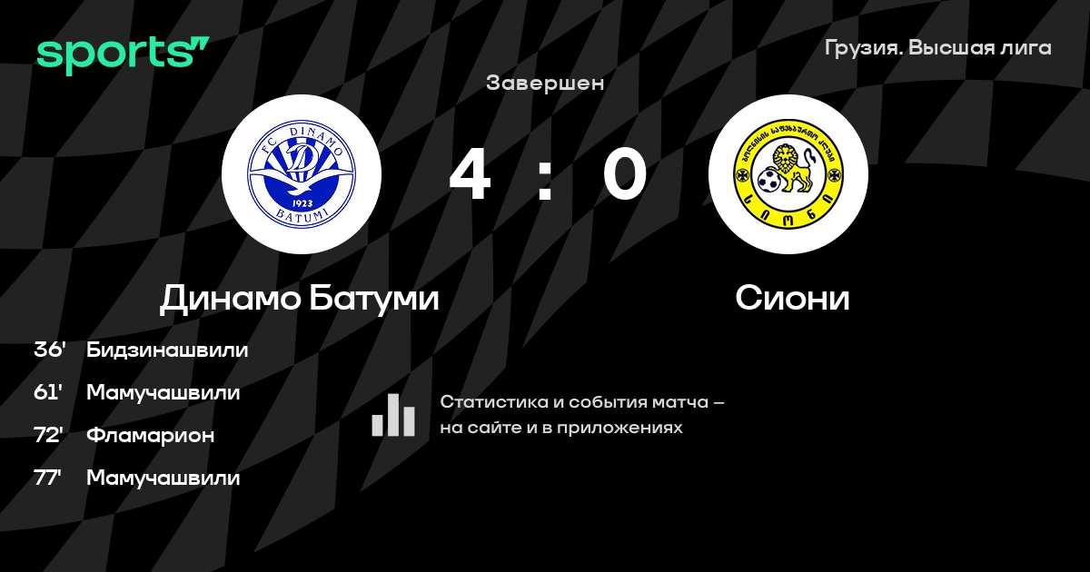 Динамо Батуми – Сиони: Динамо Батуми побеждает в 4 последних очных матчах