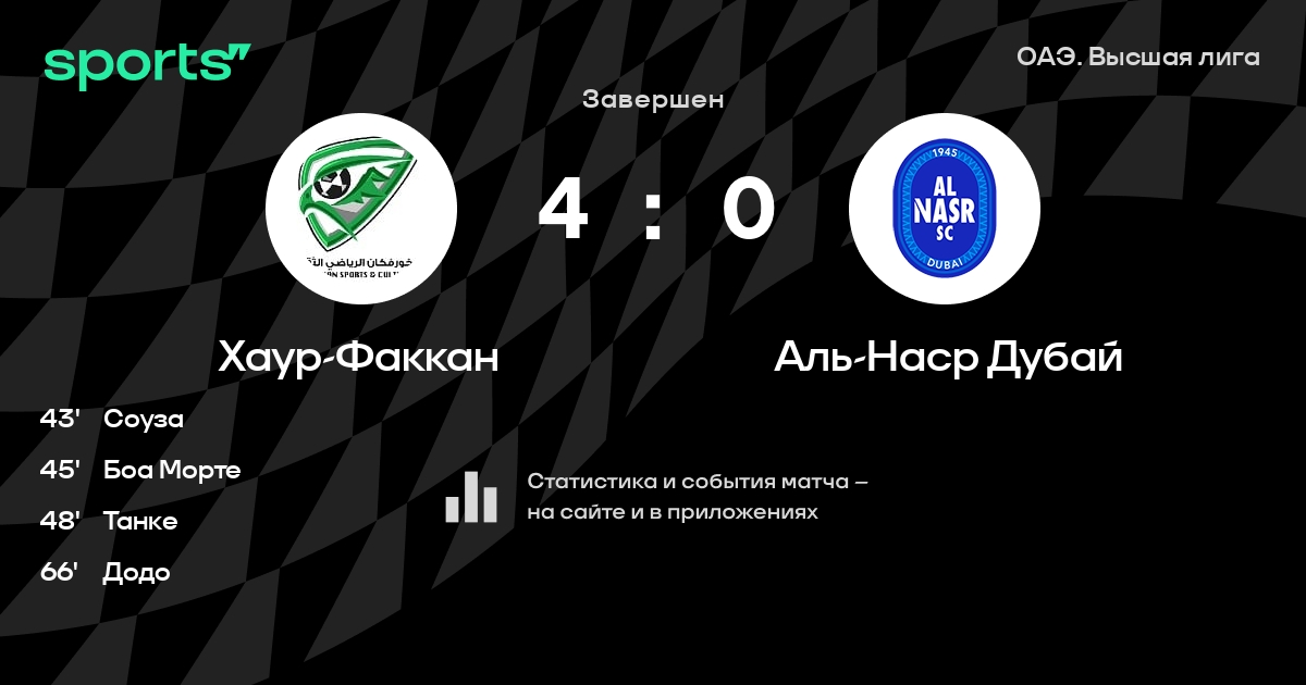 Хаур-Факкан – Аль-Наср Дубай: Аль-Наср Дубай не пропускает в 1 из 8 последних матчей против этого соперника