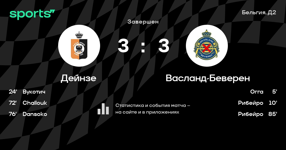 Дейнзе – Васланд-Беверен: Васланд-Беверен не проигрывает в 7 из 9 последних матчей против этого соперника