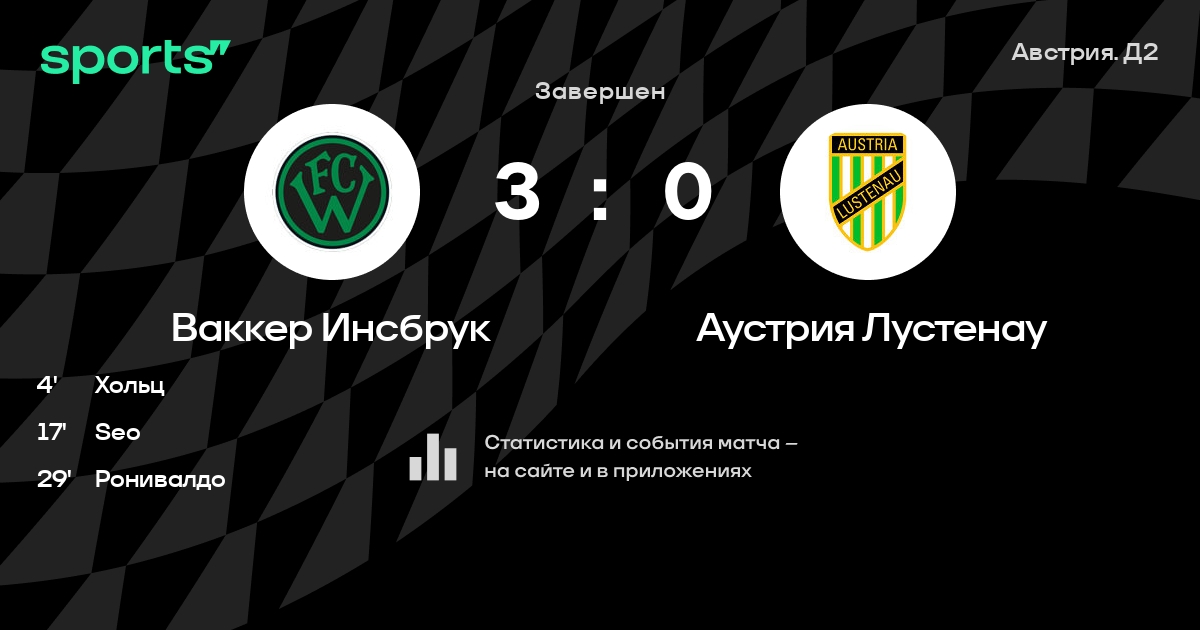 | 16 | Ваккер Инсбрук | 30 | 11 | 7 | 12 | 46 | 41 | +5 | 40 | ||