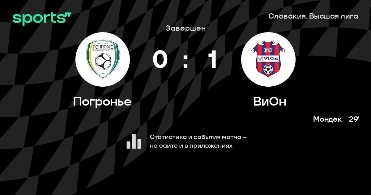 Погронье – ВиОн: ВиОн не проигрывает в 6 из 7 последних матчей против этого соперника в турнире «Словакия. Высшая лига»