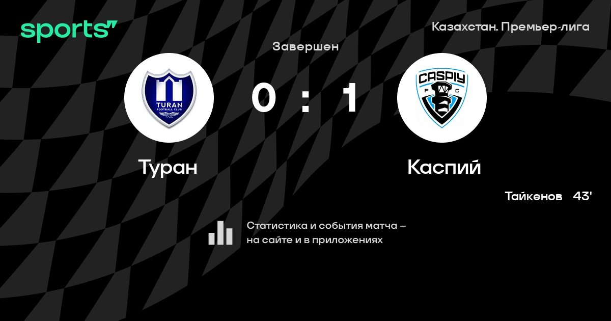 Туран – Каспий: Каспий не пропускает в 3 последних матчах против этого соперника