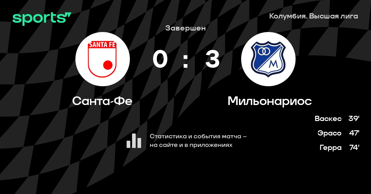 Санта-Фе – Мильонариос: Мильонариос не проигрывает в 5 из 7 последних матчей против этого соперника в гостях