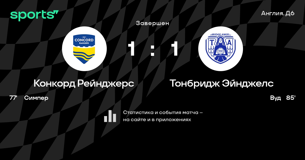 Конкорд Рейнджерс – Тонбридж Эйнджелс: Тонбридж Эйнджелс не проигрывает в 8 из 9 последних матчей против этого соперника