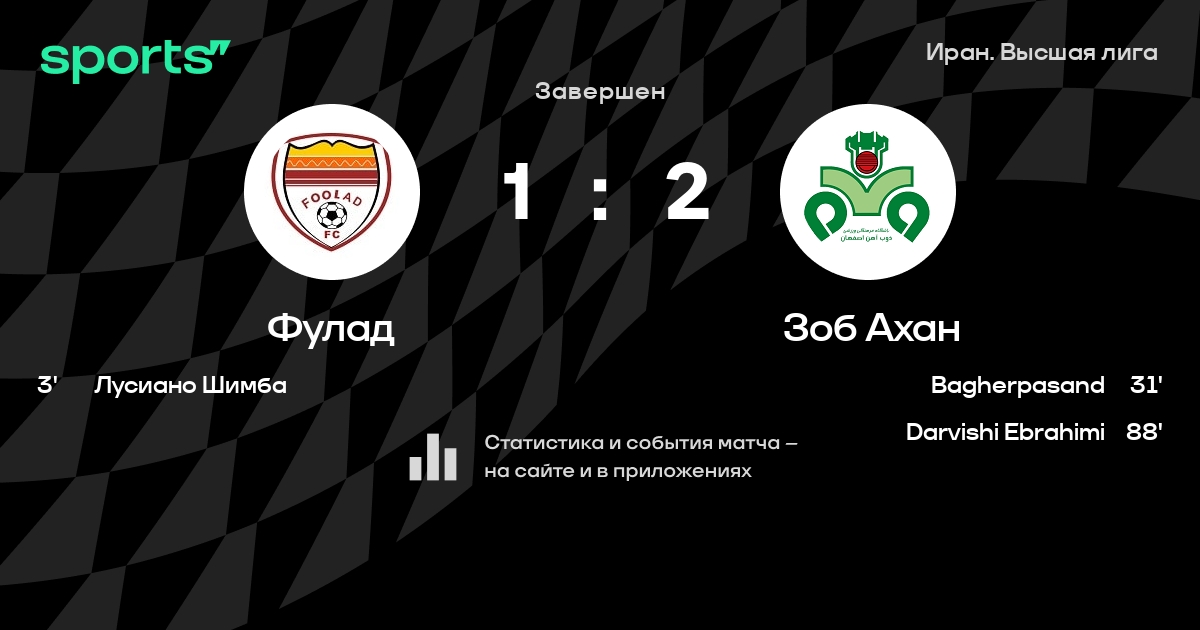 Фулад – Зоб Ахан: Фулад забивает в 4 последних матчах против этого соперника
