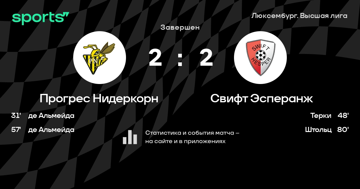 Прогрес Нидеркорн – Свифт Эсперанж: Свифт Эсперанж не проигрывает в 6 из 8 последних матчей против этого соперника
