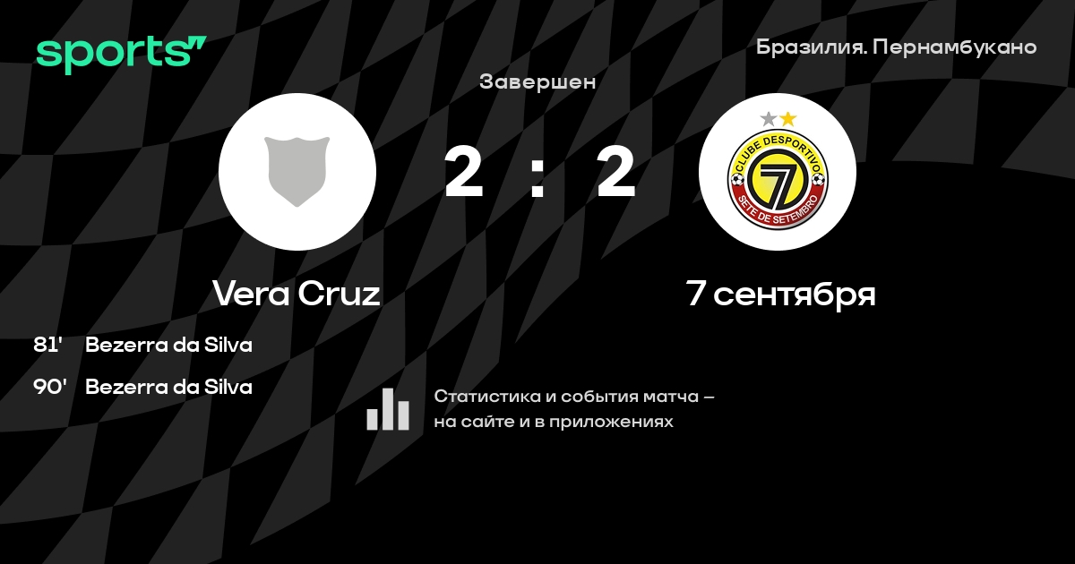 Vera Cruz FC (Vitória de Santo Antão) – Sete de Setembro EC: Vera Cruz FC (Vitória de Santo Antão) не проигрывает в 5 из 6 последних матчей против этого соперника