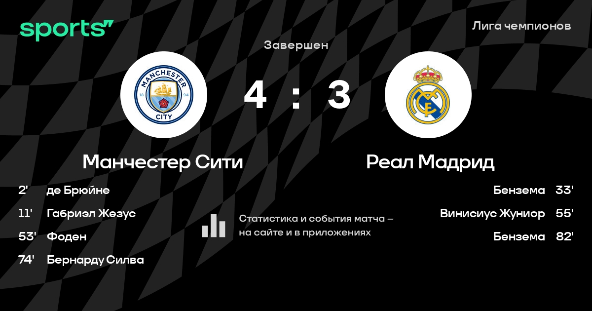Стали известны стартовые составы «Манчестер Сити» и «Реала» на первый матч 1/2 финала Лиги чемпионов УЕФА