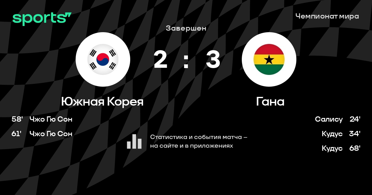 Южная Корея – Гана: Гана забивает в 4 последних матчах против этого соперника