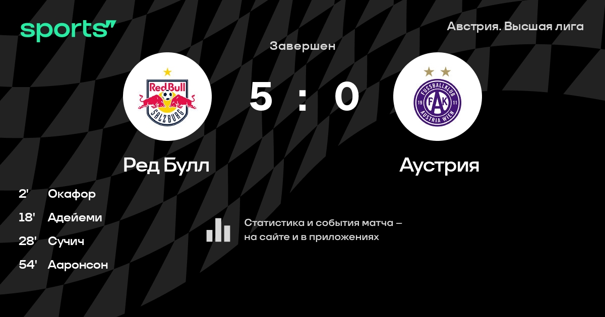 Ред Булл – Аустрия: Ред Булл побеждает в 6 последних очных матчах