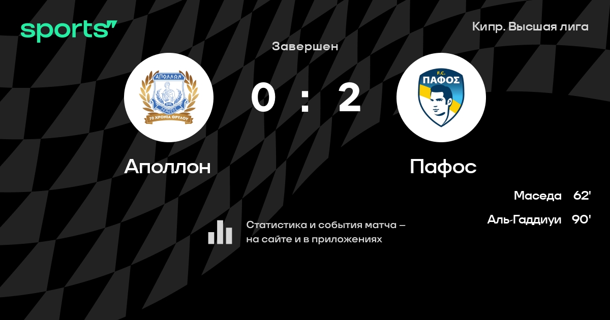 Аполлон – Пафос: Аполлон не пропускает в 3 последних матчах против этого соперника