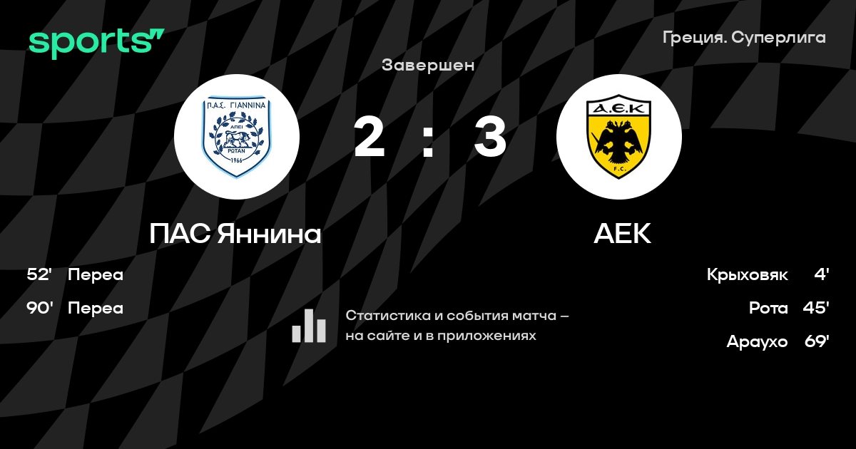 ПАС Яннина – АЕК: АЕК забивает в 6 из 8 последних матчей против этого соперника