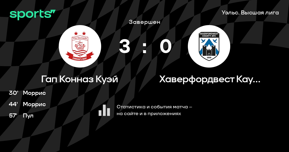 Гап Конназ Куэй – Хаверфордвест Каунти: Гап Конназ Куэй забивает в 7 из 9 последних матчей против этого соперника