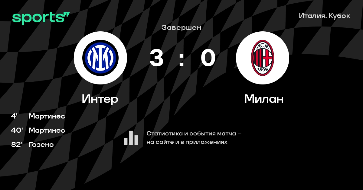 «Интер» вышел в финал Кубка Италии, разгромив «Милан» – 3:0