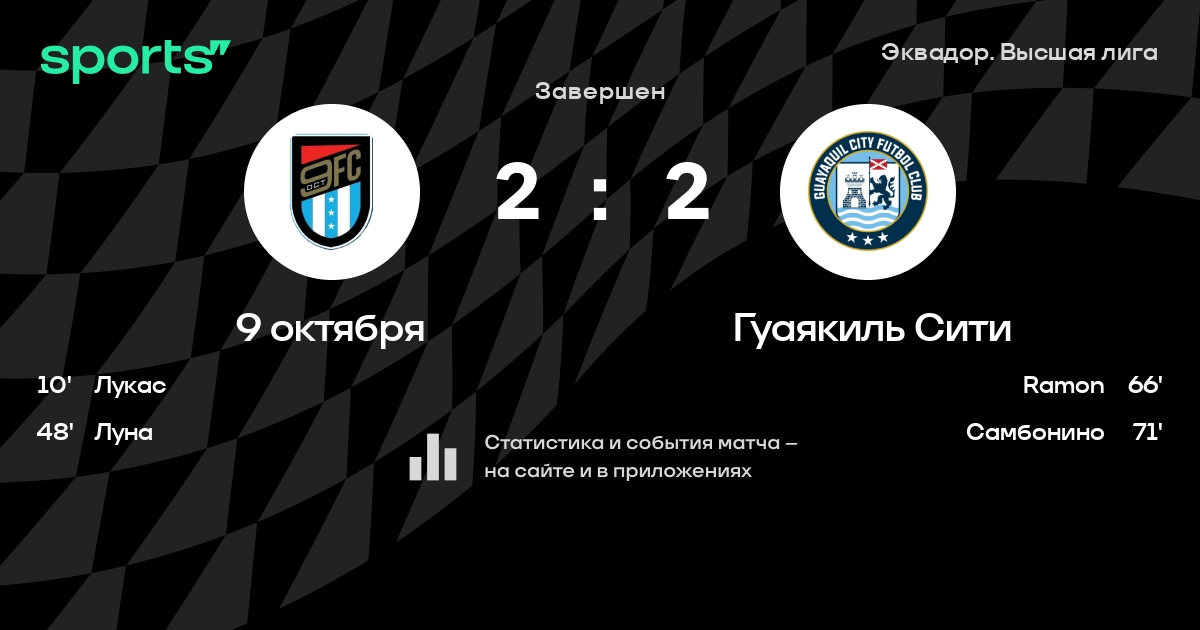 9 октября не выигрывает в 9 последних матчах в турнире «Эквадор. Высшая лига»