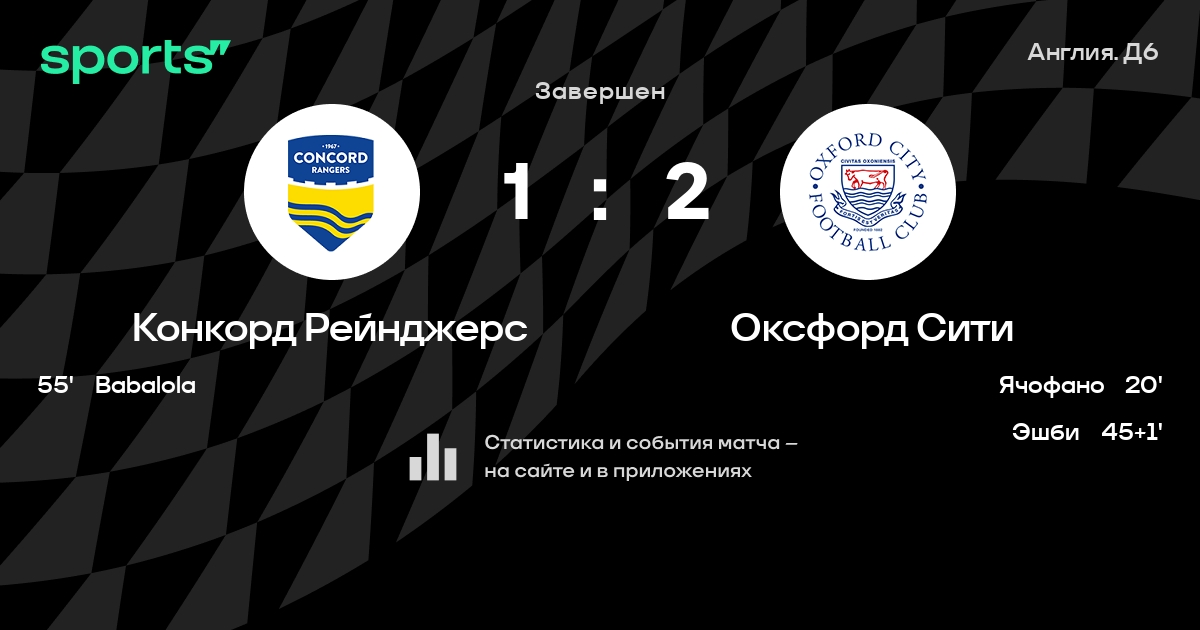 Конкорд Рейнджерс – Оксфорд Сити: коэффициенты