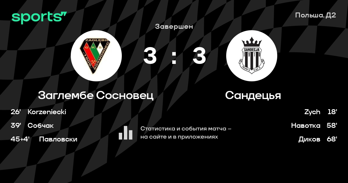 Заглембе Сосновец – Сандецья: Сандецья забивает в 3 последних матчах против этого соперника