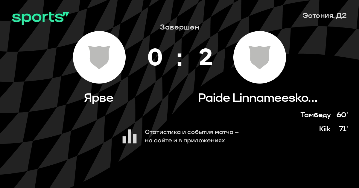 Ebrima Jarju - Каллас, Аэр, Тур, Sten-Erik Tamme - Kert Kiik, Einer, Simon - Luts, Пихт, ТамбедуЗапасные: Hanson, Saare, Usar, Vestung, Kanne