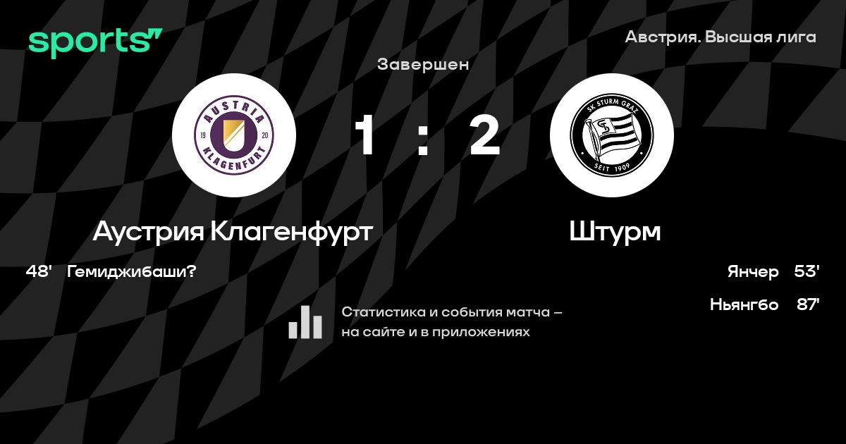 Аустрия Клагенфурт – Штурм: Штурм побеждает в 6 последних очных матчах